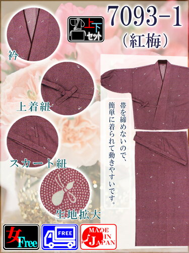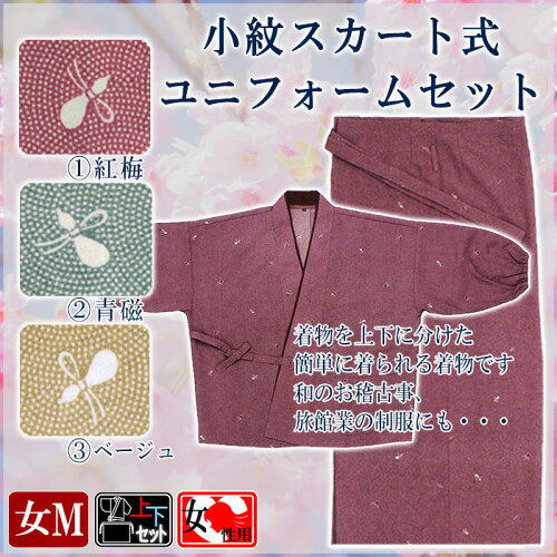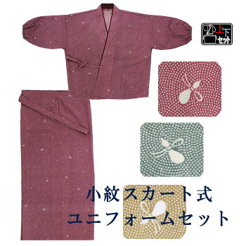 活動的なカジュアルきもの 簡単に着られて動きやすいセパレート式着物 和のお稽古事にもお薦めな作務衣感覚のお気軽和装 商品名 小紋スカート式ユニフォーム(ポリエステル100%) 商品説明 小紋の二部式着物です。